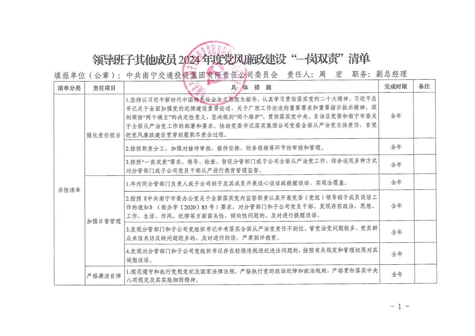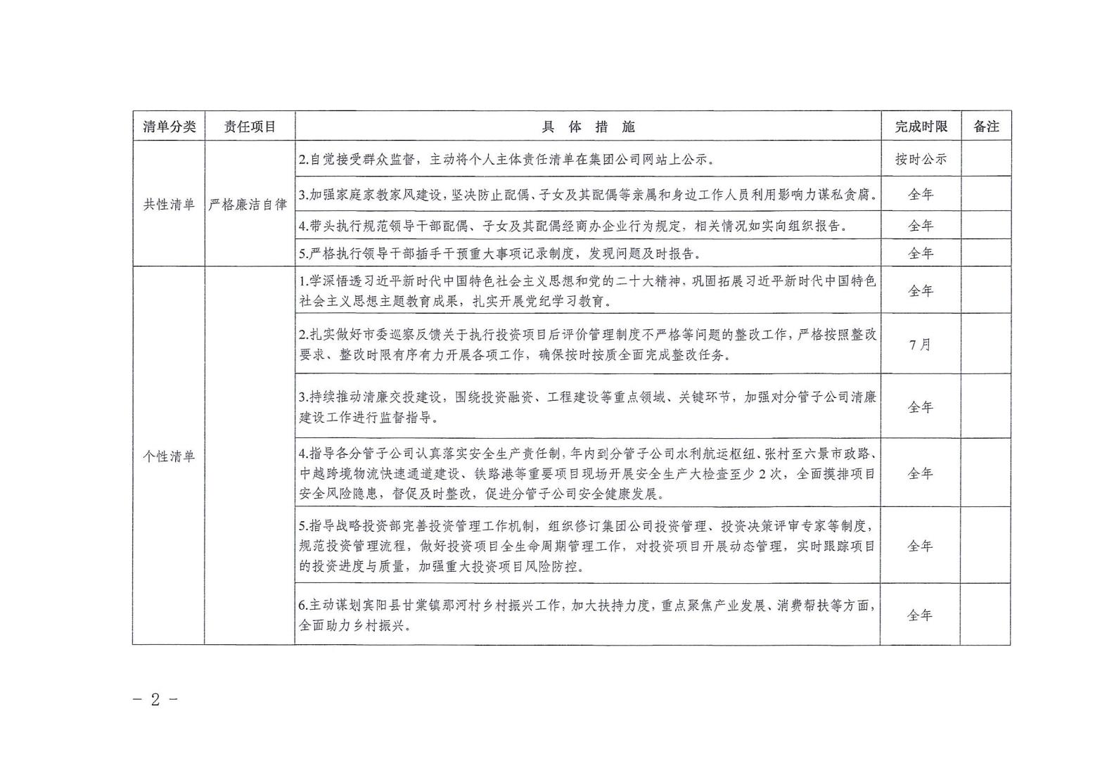 領(lǐng)導班子其他成員2024年度黨風廉政建設(shè)“一崗雙責”清單(六)