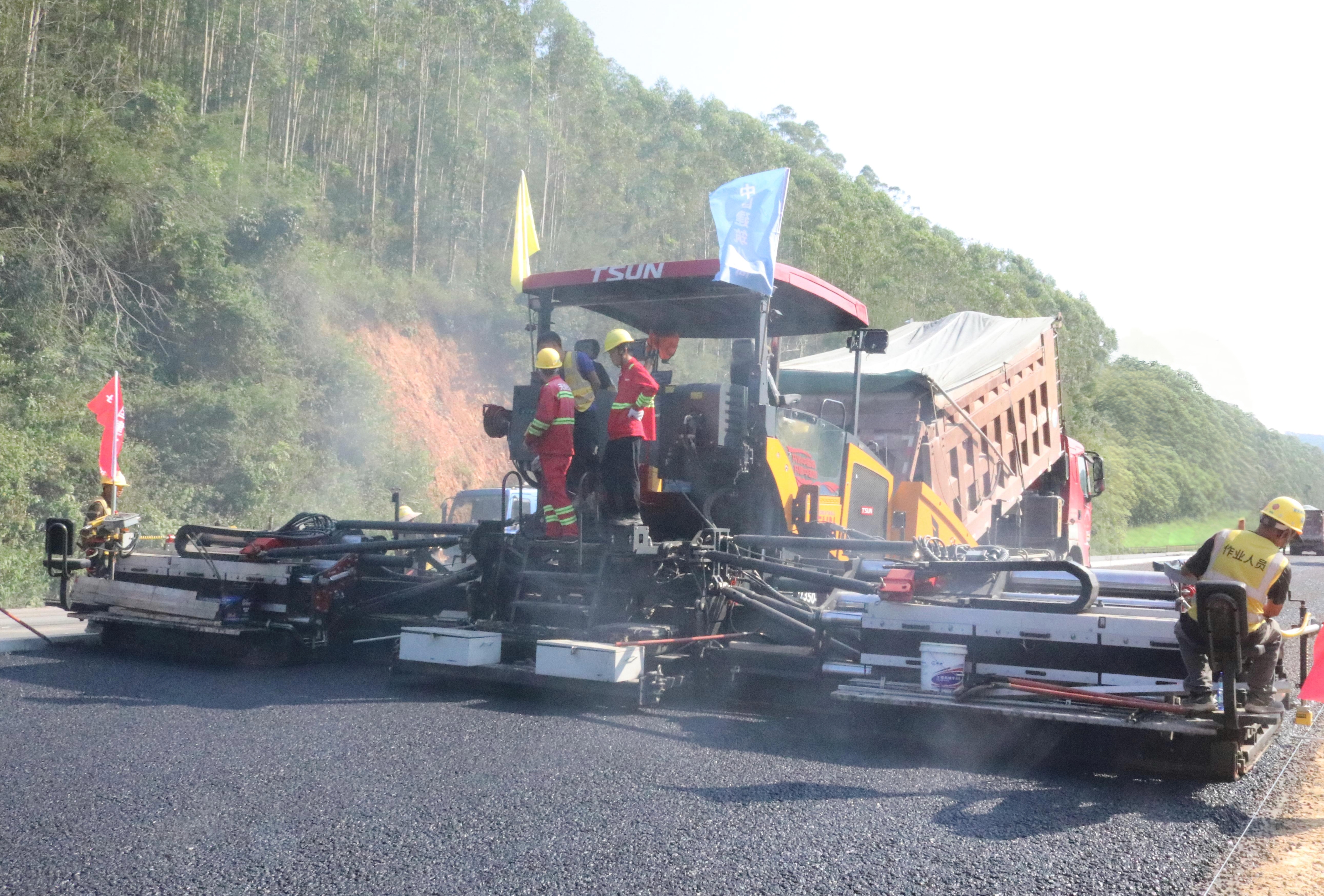 上橫高速一期工程瀝青路面全壽命周期有機廢氣(VOCs)排放特征及減排措施研究試驗段順利鋪筑