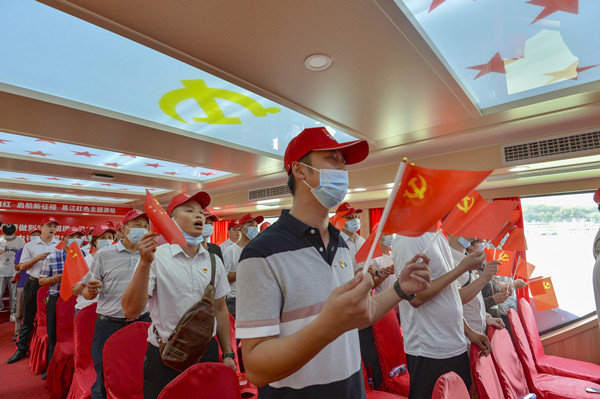 市國(guó)資系統(tǒng)退役退伍軍人登上紅色主題游船開(kāi)展黨史學(xué)習(xí)教育活動(dòng)